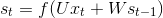 。f 为非线性激活函数如 tanh和ReLU。ot(即上上图的ht):时间步t的输出,
