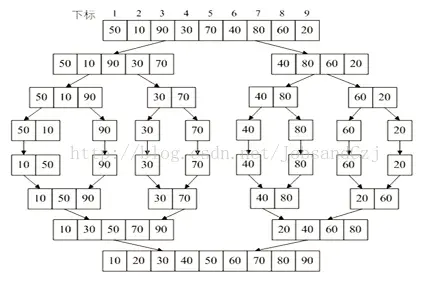 实其思想是来自冒泡排序,冒泡排序是通过相邻元素的比较和交换把最小的冒泡到最顶端,而快速排序是比较和交换
