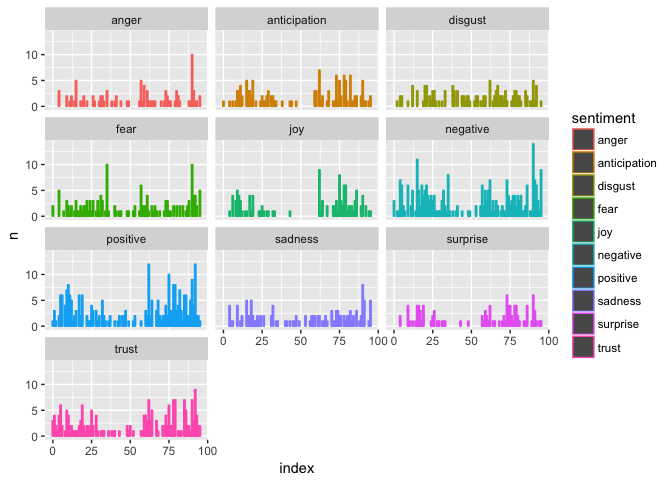 + facet_wrap(~sentiment, ncol=3)
