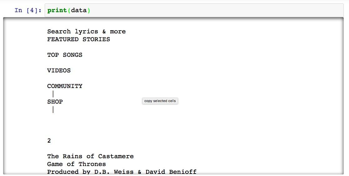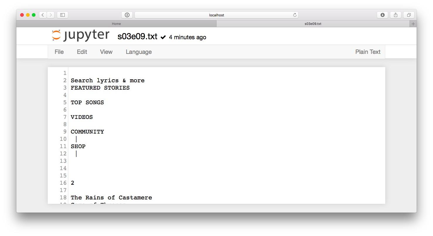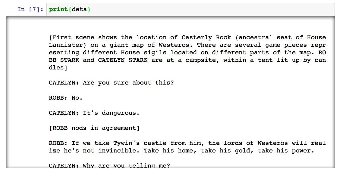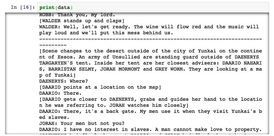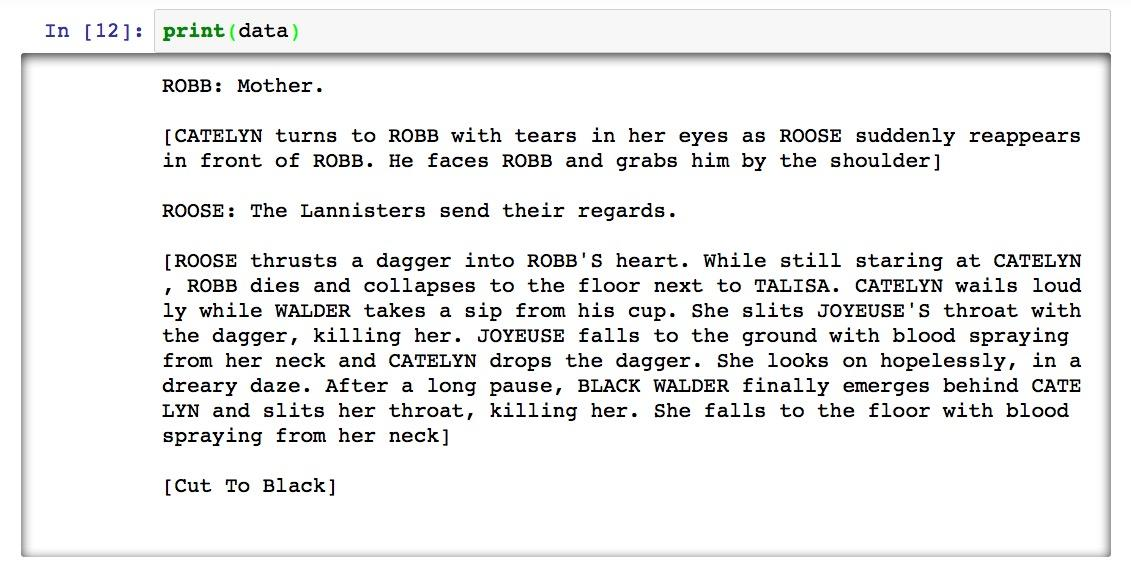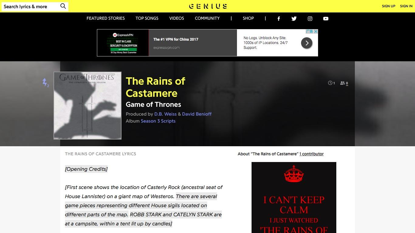 我们首先需要找到的是来源数据。作为例子,我们选择了《权利的游戏》第三季的第9集,名字叫做"The Rains of Castamere"。