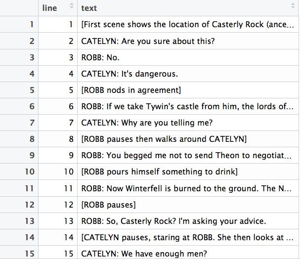 data_frame(word = c("stark", "mother", "father", "daughter", "brother", "rock", "ground", "lord", "guard", "shoulder", "king", "main", "grace", "gate", "horse", "eagle", "servent"),