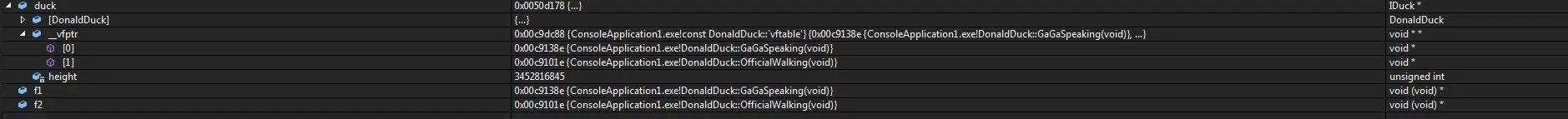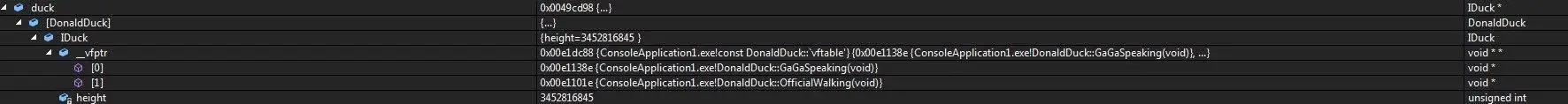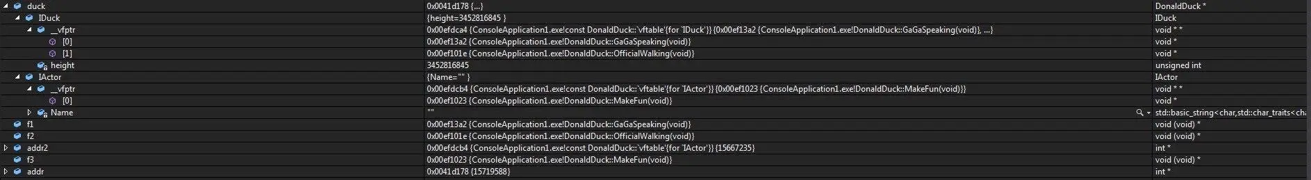 int * addr2 = (int*)(*(int*)((IActor*)duck));