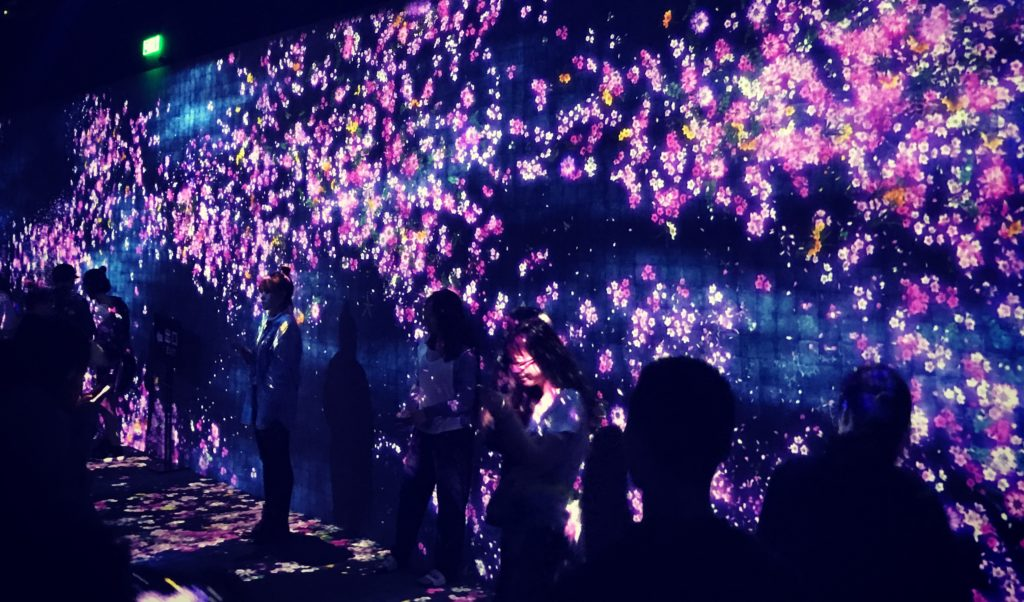 最近,我有几次记忆犹新的沉浸式体验。在台北的一家5D电影院观看《异形:契约》时,异形突然张开血盆大口,有水珠会喷射到我的脸上。在北京798观看teamlab展览,身处镜子和变换的投影中,感觉花朵的生命从自己身体上流动。