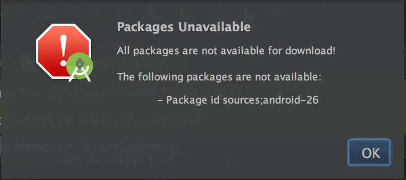 很显然,Google 还没来及提供源码包可供下载。怎么办呢?我们可以先使用旧的源码“偷天换日”一下。比如使用 android-25 或者其他旧版的源码顶替,以解决使用 android-26 开发时需要查看源码的燃眉之急。待到新版本源码开放下载时,记得再删除,重新下载替换回来。