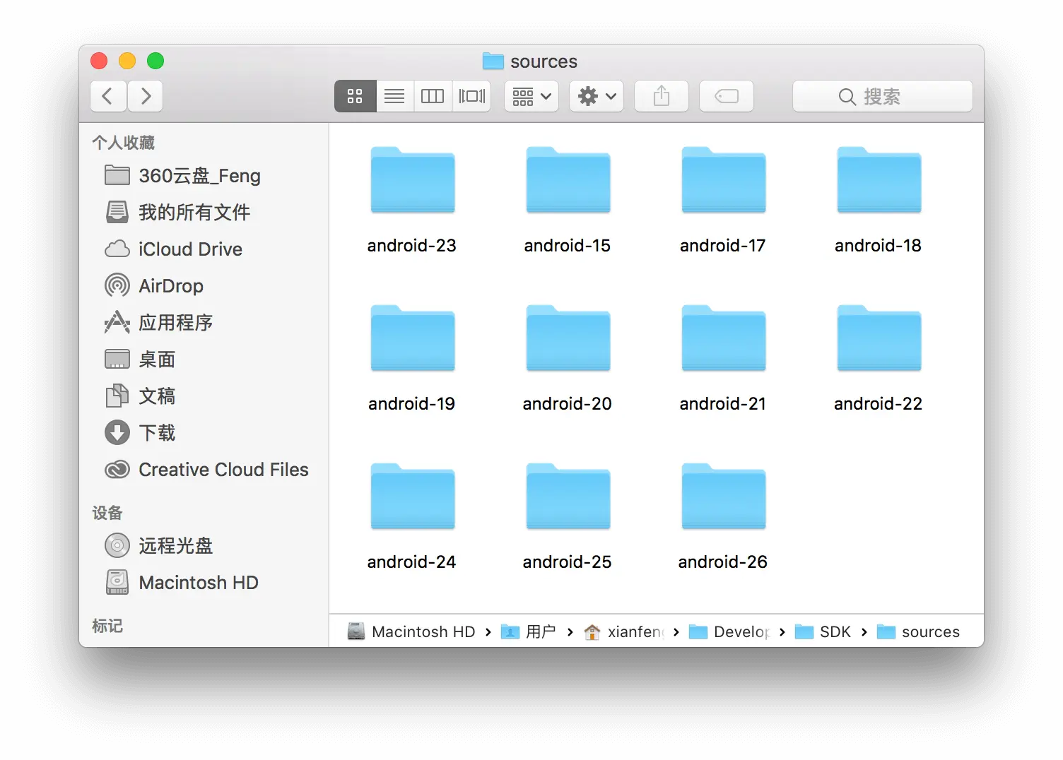 具体做法是,找到本地 SDK/Sources 目录,复制一份 android-25 源码文件,并改名为 android-26,如图: