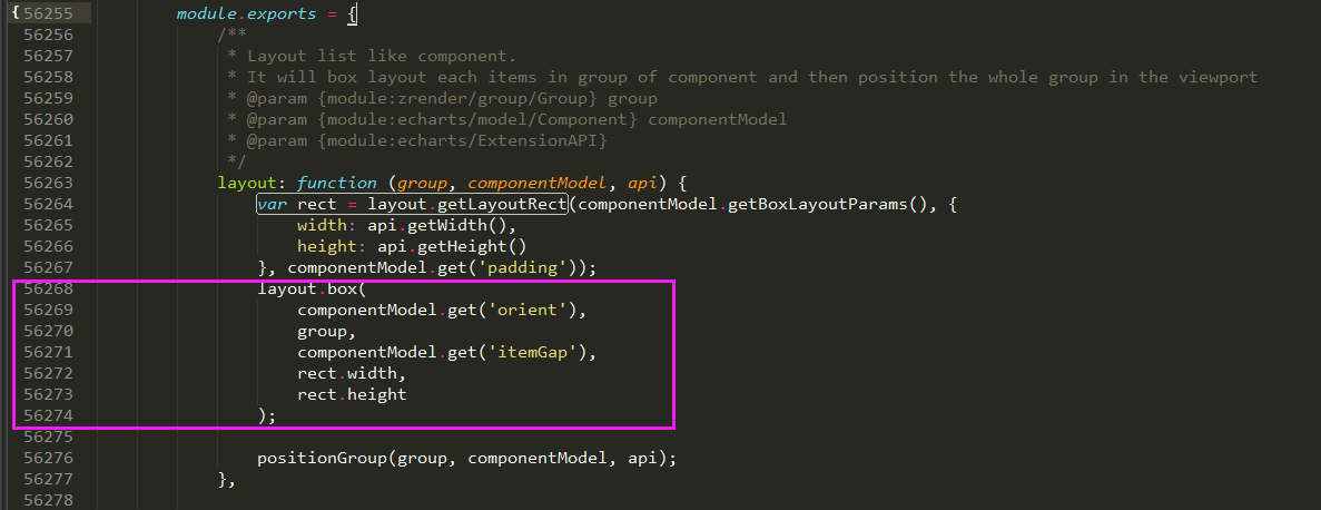 找到以下代码function boxLayout(orient, group, gap, maxWidth, maxHeight)...截图如下: