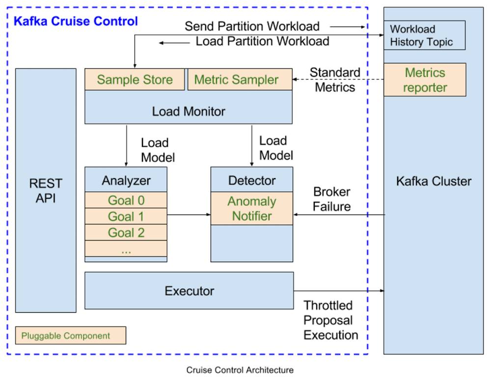可扩展性: Kafka用户对其Kafka部署的可用性和性能有不同的要求,而且会使用各种部署工具,管理节点和数据收集机制。 Cruise Control必须能够满足任意用户定义的目标并执行用户定义的操作。
