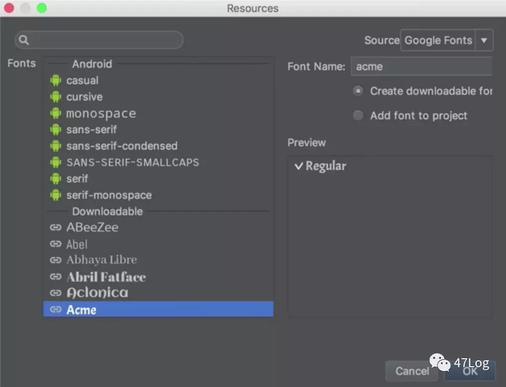 同时支持downloadable font ,无需把字体打包到APK中,google play service 会自动为我们下载这些字体