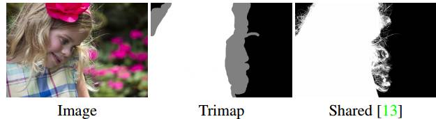 Matting任务不同于其他图像处理任务,因为它的输入不仅包含一张图像,还有一个trimap——图像边缘的轮廓线,这使matting任务成了一个“半监督”问题。