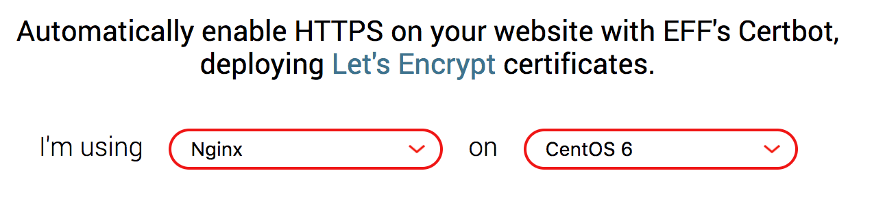 先打开certbot的网站,选择你的操作系统,如笔者用的是centos + nginx: