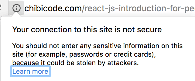 Chrome/firefox等浏览器会在较明显的位置提示当前http网站不安全,只要点一下地址栏左边的i按钮就会弹出来: