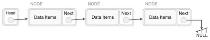 链表(Linked List)是一种物理存储单元上非连续、非顺序的存储结构,数据元素的逻辑顺序是通过链表中的指针链接次序实现的,表现形式如下图所示: