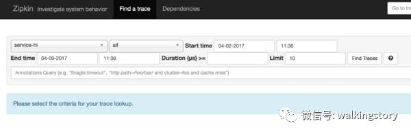 点击find traces,可以看到具体服务相互调用的数据:
