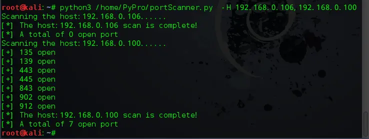 print('[*] The host:%s scan is complete!' % (host))