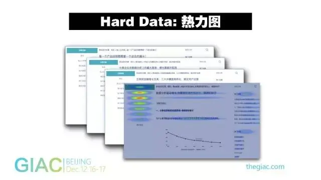 Hard Data的热力图对产品经理很有帮助。假如产品经理觉得产品页面上放这个会比较好,但热力图显示与产品经理的认知完全相反,用户根本不会理会页面上很显眼的地方,反而会点击另一个很遥远的东西,那是他们觉得有价值的东西。