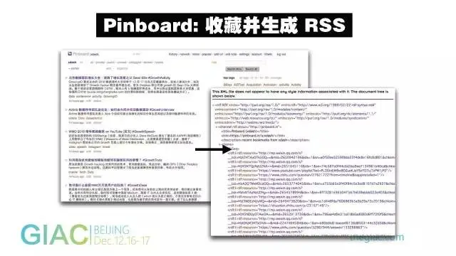 Pinboard用于收集一个个链接条目,便于日后回顾。Pinboard还有一个好处,就是它每收集一个条目,就会生成一个RSS,可以理解为它整个就是一个RSS列表。