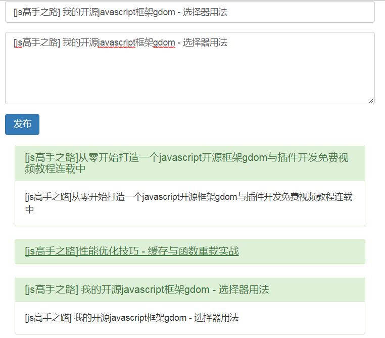 最后,我们结合委托模式,来实战一个微博发布的功能,微博发布之后,给动态创建的dom元素添加手风琴折叠功能