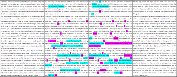 我不是深度学习/NLP 专家,只是作为语言和文学爱好者比较好奇现在机器翻译的水平。如果机器翻译能完全替代人类翻译,一定是先从英-法,英-德,英-西这几种组合开始的。所以这里我们测试机器的西班牙语—英语翻译,分别比较西语原文、DeepL、谷歌和专业译者(如果有)。