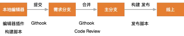 流程化的意思是将自动化代码质量检查和Code Review与代码流动的过程绑定,从而保证所有上线的代码都经过机器与人工多个环节的检查。
