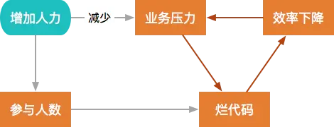 为了应对业务压力,常见的做法就是向项目中增加人力,但是单纯地增加人力的话,会因为风格不一致、沟通成本上升等原因导致烂代码更多。