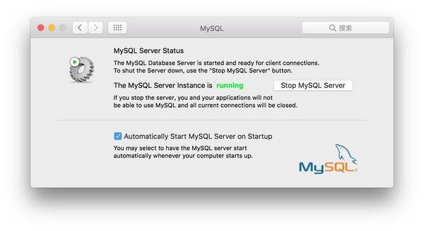 搜索结果中出现的默认结果,就是系统偏好设置里的MySQL选项。回车确定即可。