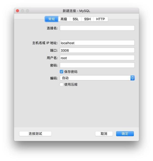 我们给连接随便起个名字,就叫localhost吧。密码那一栏,填写之前你存好了的临时密码。其他保持默认。