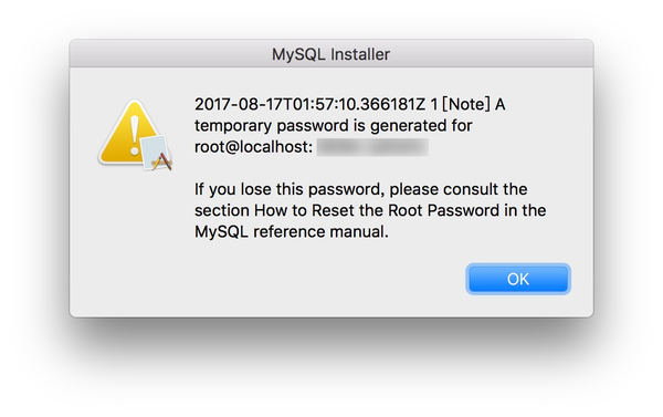 安装结束之后,会弹出一个窗口,告诉你MySQL的初始临时密码。
