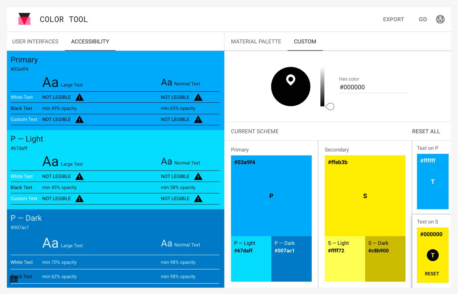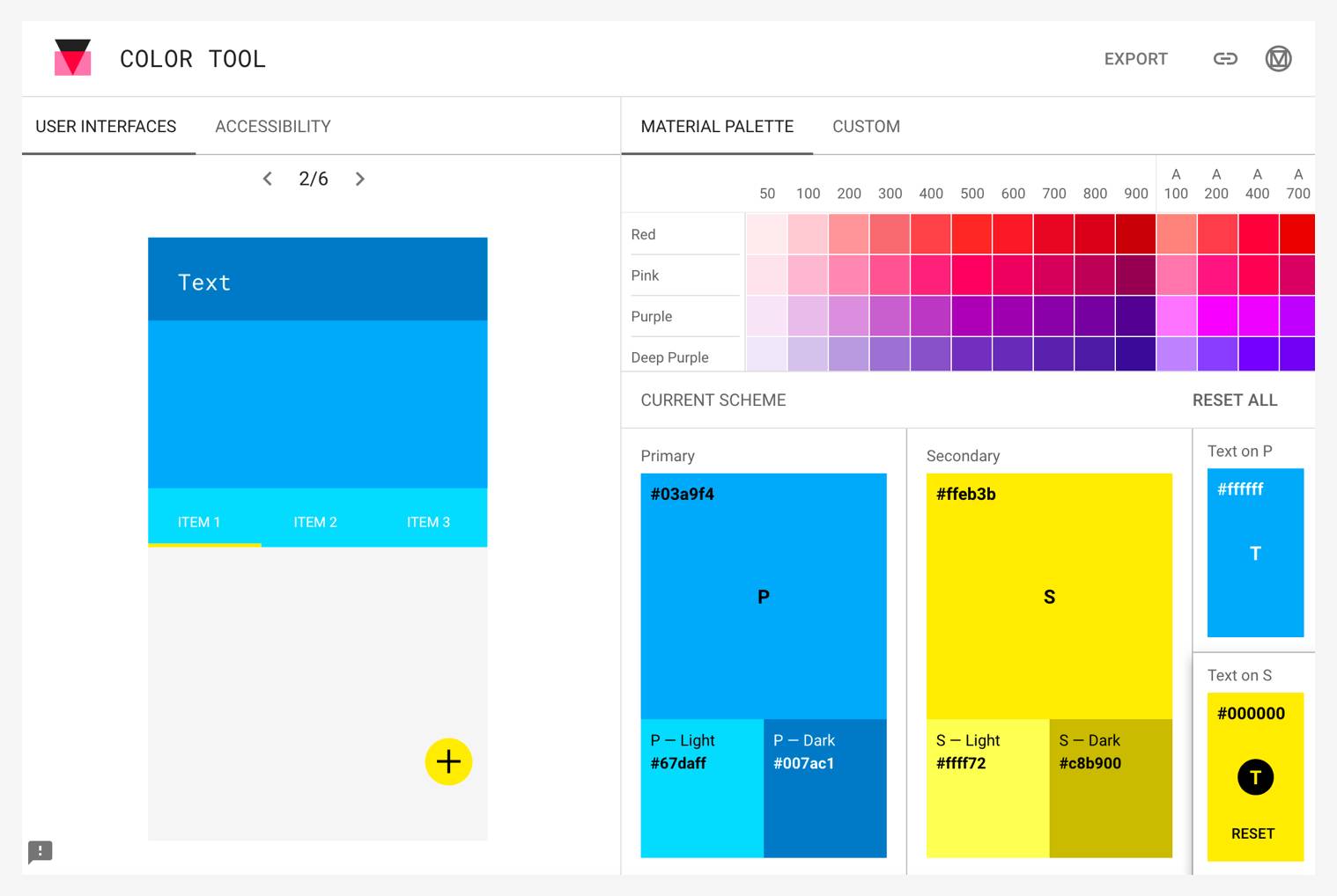 Color Tool 是谷歌为设计师和工程师打造的全能配色工具。包含调色、可用性测试、导出工程文件三大功能。