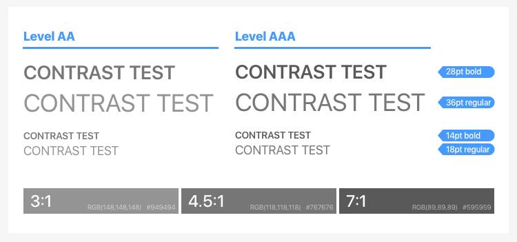 WCAG 针对字体大小及对比度规定了两个级别: