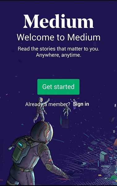 Medium也做了很成功的用户新手引导页。他们的价值定位也是告诉用户随时随地阅读你关心的故事。