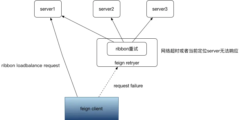 feign是netflix提供的服务间基于http的rpc调用框架,在spring cloud得到广泛应用。默认情况下,一个feign client是在hystrix断路器中执行,并利用ribbon进行软负载选择远程target service,所以可以想象出一个feign client的层次架构是包裹的层次,hystrix控制整个rpc从调用到方法返回,而ribbon控制从选址到socket返回,关于它们的超时设置,请参考我上一篇博客:SpringCloud重试机制配置。
