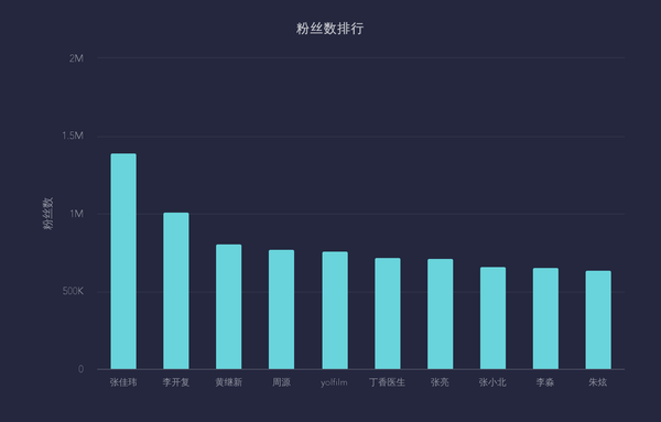 先来看看排名前十的大V, @张佳玮 @李开复 @黄继新 @周源 @yolfilm @张亮 @张小北 @李淼 @朱炫 这九位都算得上是知乎上比较早的用户了,其中3位都是知乎高管层。