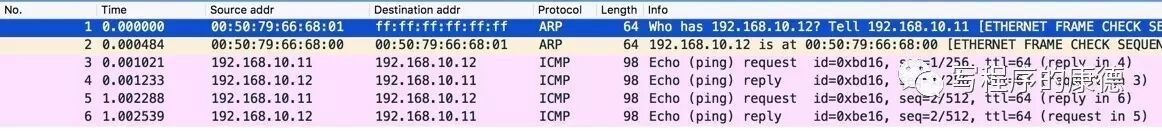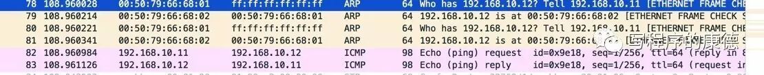 广播数据包分别送到PC2和PC3。PC3发现和自己没关系直接丢弃;PC2发现是发送给自己的数据包则接收数据包,进一步判断是ARP数据包则返回一个ARP回复。PC2的ARP回复是一个单播数据包,目标地址是PC1的MAC地址,源地址是PC2的MAC地址。