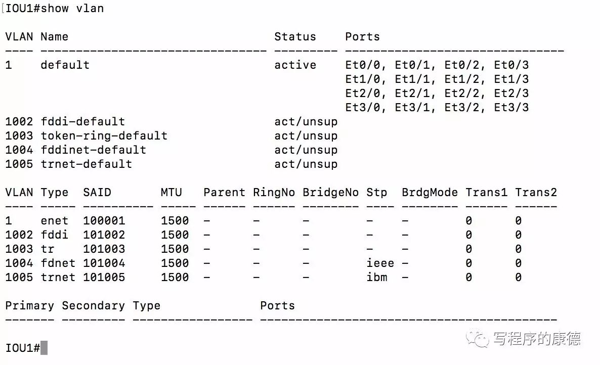 show vlan查看本台交换机的所有VLAN(或者叫广播域、BD、在OpenStack之类的系统中叫网络)