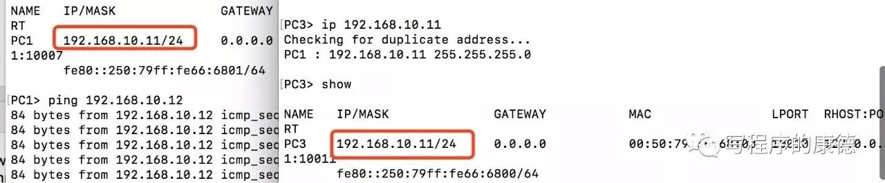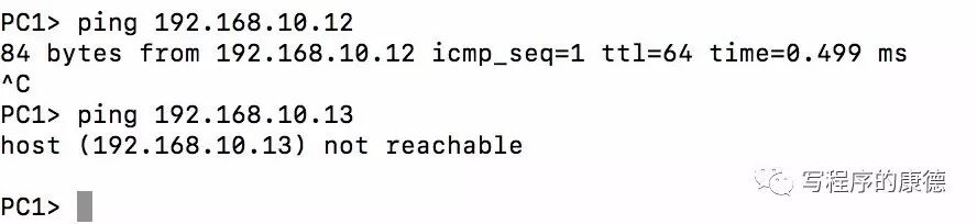 此时,通过PC1 ping PC2是正常,PC1 ping PC3则失败。