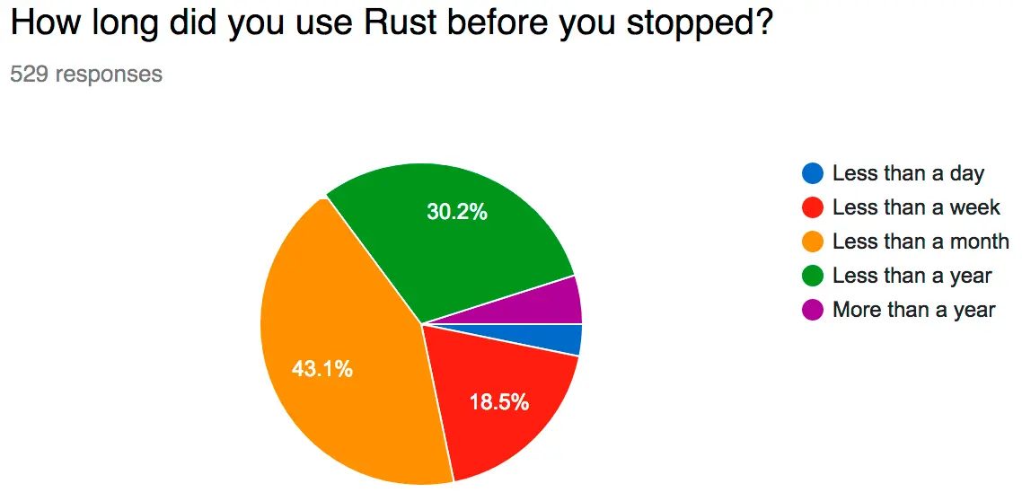 而对于那些之前用过,现在不再使用 Rust 的用户,调查发现: