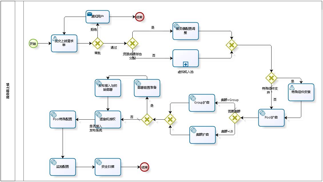 下面我以服务器上线流程具体场景为例进行说明如何设计流程: