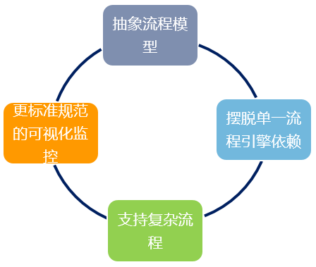 在经过了一个成熟期之后,现有的流程也慢慢暴露出了一些新的问题,包括流程的可视化、价值数据的挖掘、底层流程引擎的单一,为了解决这些问题,我们从去年下半年开始,对原来的流程进行了重新设计,抽象出更加标准化的流程模型,以及标准规范的可视化和监控。