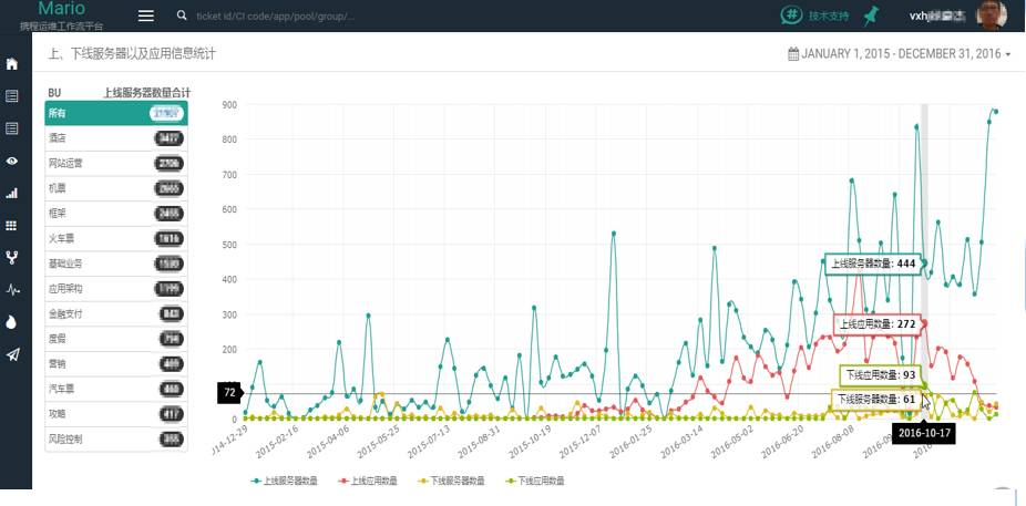 除了原来对流程实例以及实例详情进行可视化管理外,底层的其它有价值数据并没有得到深挖,比如跟业务相关的数据,各个业务部门关心的历史服务器、应用的趋势等,那么通过新的可视化我们可以更清晰看到业务部门的相关指标数据以及历史趋势。