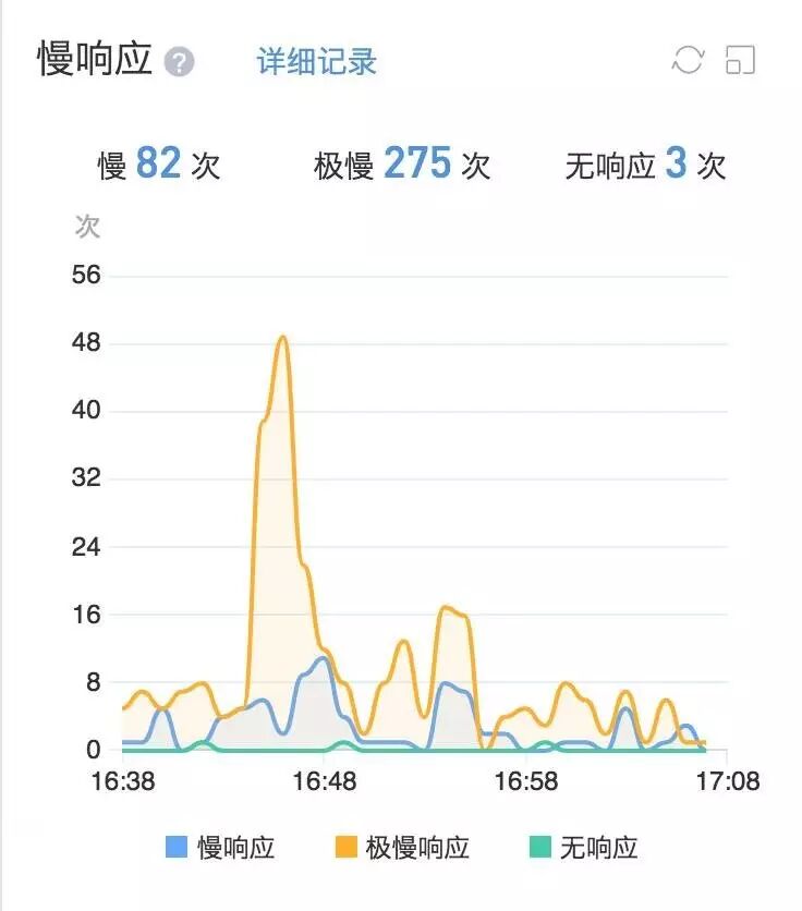 慢响应分为三个级别:慢响应,极慢响应,无响应,分别对应响应时间平均值的 3 倍标准差,10 倍标准差及 300 倍标准差。在计算基线时,除了正常的请求,还要考虑慢响应对基线的影响,在接口确实因为业务调整而导致响应时间有变化的时候,基线也要能跟随着调整到正确的值。