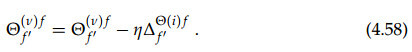 FNN 很重要的一个概念就是加权平均过程,即将前一层给神经元的激励值和对应的权重矩阵相乘而得出后一个神经元的输入值,这一过程展示在下图 4.2 中,我们可以说前一层神经元的加权和就是后一层神经元的输入。