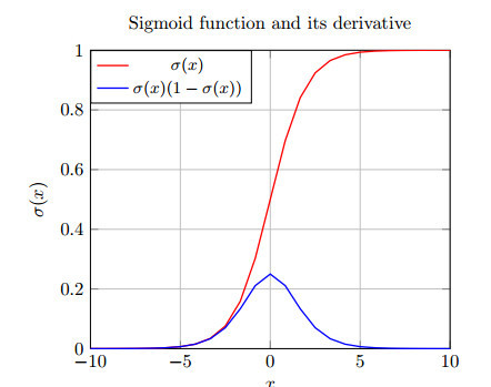 图 4.3:Sigmoid 函数和它的导数