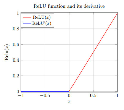 图 4.5:线性修正单元(ReLU)函数和它的导数