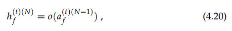 其中其中 v∈[0,N−1]、f∈[0,(F_v+1)−1]、t∈[0,(T_mb)− 1]。在这里 g 为激活函数,FNN 另外一个十分重要的元素,因为激活函数的非线性属性,所以它允许预测任意的输出数据。在实践中,g 通常采取以下描述的非线性函数作为激活函数。