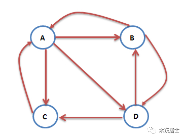 我们上面描述的上网者的行为是一个其实马尔科夫过程的实例,要满足收敛性,需要具备一个条件:图是强连通的,即从任意网页可以到达其他任意网页。一旦出现如上图的D的节点,就不满足收敛性的。(这里还是先这样理解,感兴趣的可以看一下马尔可夫过程,其实我也没细看,嘿嘿。)