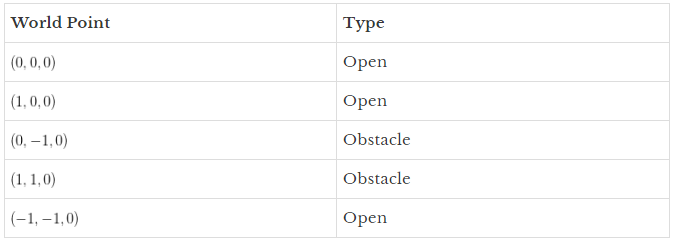 回忆一下第三部分的文章,移动地图维持了一个从3D点到标签的字典。例如,在给定时间内,机器人在内部地图上可能具有表3所示的数据。