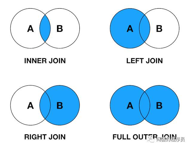 以上四种,就是 SQL 里常见 JOIN 的种类和概念了,看一下它们的合影:
