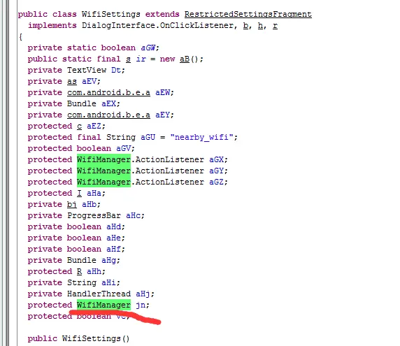 这下就比较操蛋了,既然api没有做切换限制为何不能切wifi。带着这个疑问我想了想别家的应用是如何做的呢?比如WIFI万能钥匙。我如果反编译他们家的APP会被加壳和代码混淆的。(其实我尝试过了,但没有脱开。)