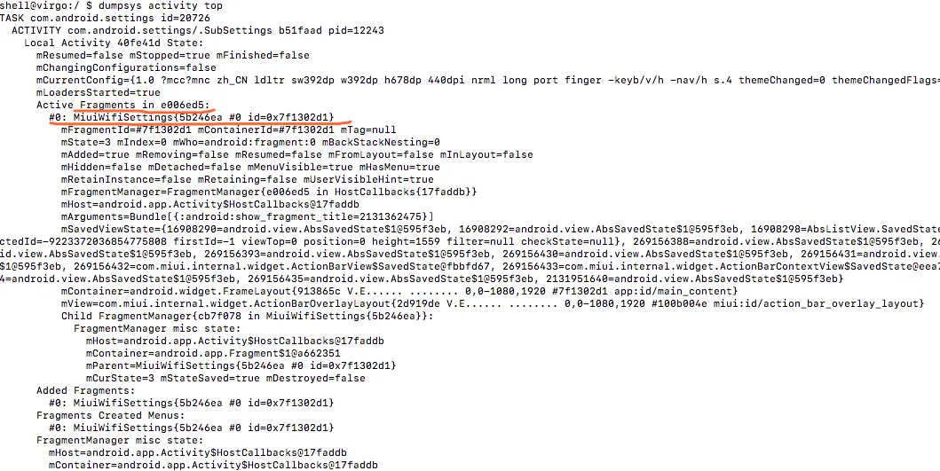 这里除了使用adb shell的方式还可以用 当前Activity App 进行查看,只不过信息没有这么全面。