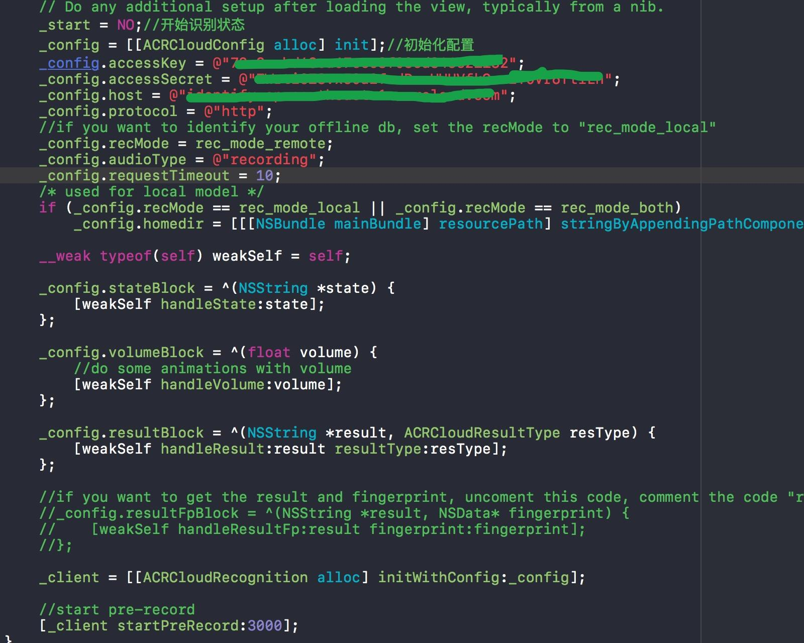 在这里,我们需要配置 accessKey accessSecret host 这3个关键的参数,然后请求超时这些就各取所需了,还有需要注意到的是几个block回调方法